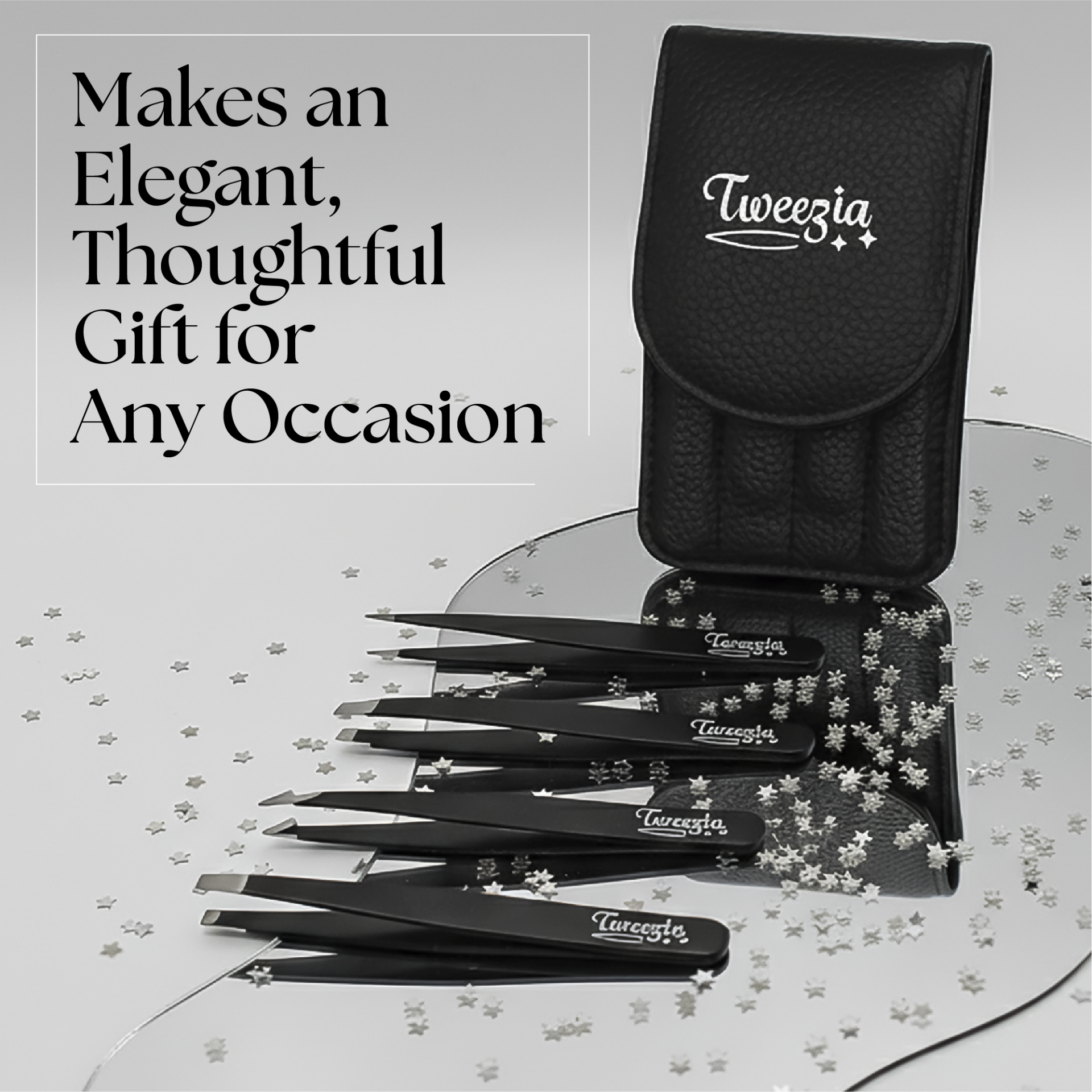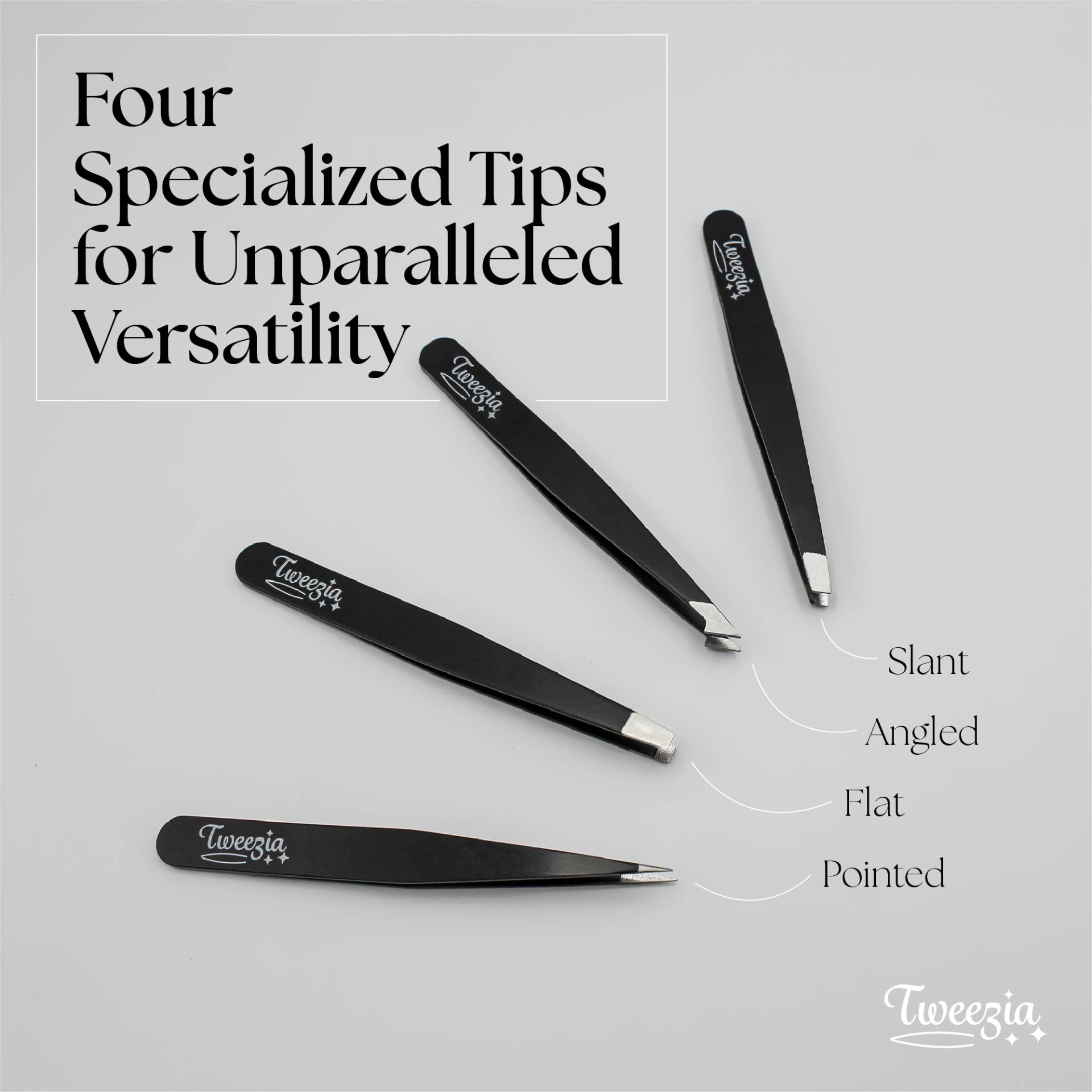 - Four Specialized Tips Help You Attack From Every Angle: The TWEEZIA Premium Tweezer Set comes with four tweezers — classic, slanted, pointed tip, and slanted pointed — so you can accomplish any task at hand.